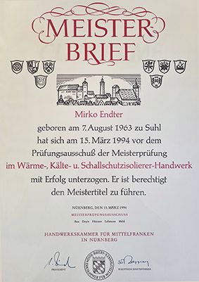 Am 01.06.2001 gründete Geschäftsführer Mirko Endter die Firma isotec - Isoliertechnik Endter GmbH mit Sitz inZella-Mehlis.